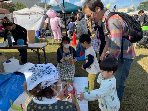今年は啓発を目的としたミニゲーム&綿菓子のブースを出店しました。