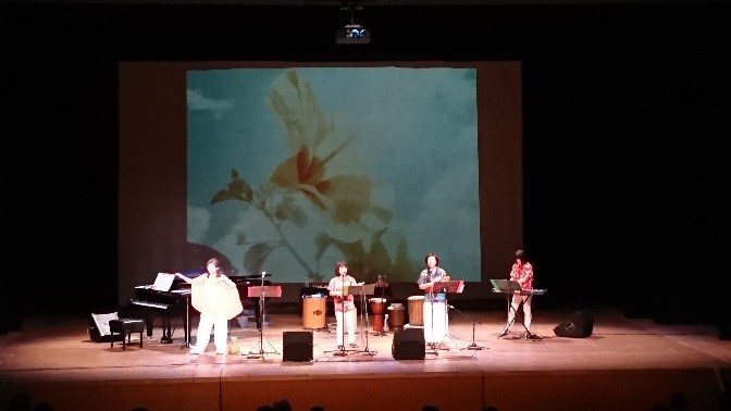 第2部では、武庫川女子大学附属中学校・高等学校マーチングバンド「Eins」の明るく爽やかなショーと4名の音楽療法士による音楽隊「POPOLELE」の色々な楽器演奏や歌で盛り上がり、楽しい時間を共有しました。
